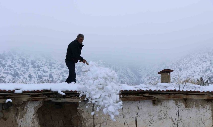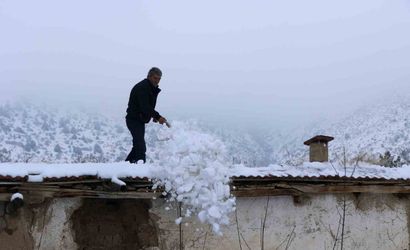 Bununla birlikte, kar yağışı nedeniyle toprak damlı evlerde yaşayan vatandaşlar sabahın erken saatlerinde bacalardaki karı temizlemeye başladı.