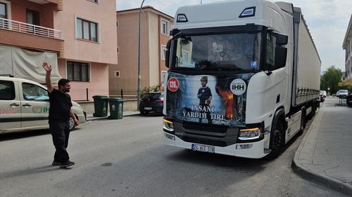 Erzincan'dan Filistin ve Suriye'ye insani yardım malzemeleri taşıyan bir tır uğurlandı.