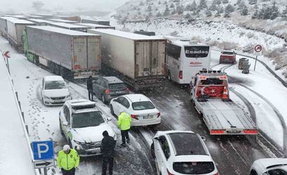 Karayolları ekipleri, yollarda kalan araçların trafik akışını engellememesi için kar küreme ve tuzlama çalışmaları yürütüyor. Ekipler olası kapanmalara karşı tedbirlerini sürdürüyor.