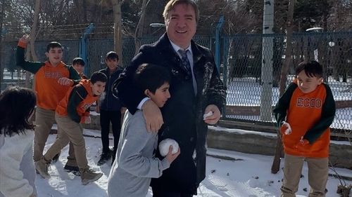 Erzincan Valisi Hamza Aydoğdu, Cumhuriyet Ortaokulu'nda öğrencilerle kar topu oynayarak eğlenceli anlar yaşadı.