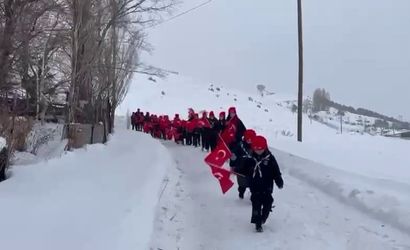 Erzurum'da izciler bayrak yürüyüşü