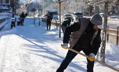 Kırsal alanlar, ana ve ara arterler, cadde ve sokaklarda görev yapan ekipler, araç ve yaya trafiğinin bulunduğu bölgeleri baştan aşağı temizliyor. Erzurum Büyükşehir Belediyesi’nin karla mücadelede görev yapacak olan kar timleri, tüm ekipmanıyla haftada 7 gün 24 saat esasına göre çalışıyor.