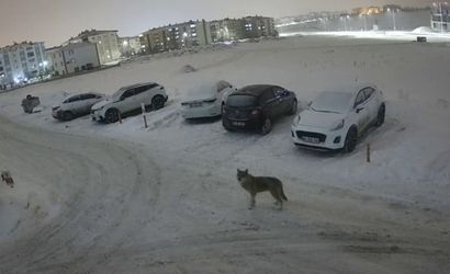Erzurum'un Palandöken ilçesine bağlı Yıldızkent semtinde bir sitenin güvenlik kamerasına yansıyan kurt, çevre halkında tedirginlik yarattı.