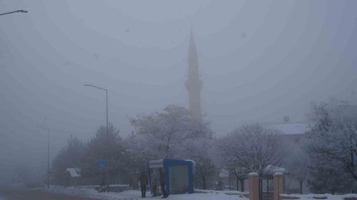 Erzurum'da sis ve pus kent merkezinde ulaşımı aksattı; Meteoroloji 12. Bölge Müdürlüğü buzlanma, don ve çığ riskine karşı uyarıda bulundu.