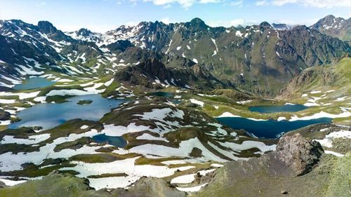 Erzurum'un İspir ilçesindeki Yedigöller, 3 bin 200 rakımda kar ve yaz manzaralarını bir araya getiriyor.