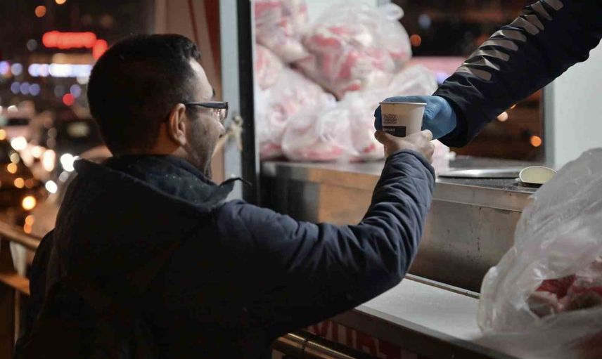 Esenyurt Belediyesi metrobüs duraklarında sıcak çorba dağıtıyor