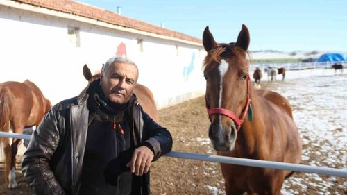Eskişehir'de İngiliz ve Arap atı yetiştiricisi Yenel Kaya, kış koşullarında su, yem ve zemin sorunlarının bakım zorluğunu ve 90-100 at ile 25 gebe kısrağın takibini anlattı.