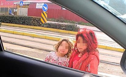 Eskişehir'de soğuk kış gününe rağmen bacakları çıplak halde dilencilik yapan 2 kız çocuğunun görüntüleri, görenlerin yüreğini burktu.