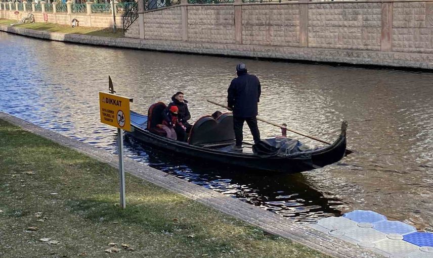 Gondol turu yapanların görüntüleri, çevredeki vatandaşların meraklı bakışları arasında dikkati çekti ve kent merkezinde kışın farklı bir renk oluşturdu.