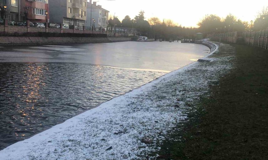 Eskişehir’de gece saatlerinden itibaren etkili olan dondurucu soğuklar, kentin simgesi Porsuk Çayının yüzeyini buzla kapladı.
