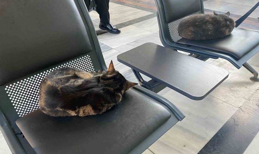 İstasyon içindeki koltukların üzerinde kıvrılarak uyuyan sevimli hayvanlar, hem güzel hem de ilginç bir görüntü oluşturdu. Tren bekleyen yolcular, yanlarında uyuyan kedilere dokunarak ve onları severek vakit geçirdi.