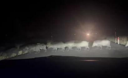 Görüntülerde, kısa sürede yolun karşısına geçen yaban domuzlarının sürü halinde hareket ettiği ve sürücünün dikkatli davranmasıyla herhangi bir çarpışma yaşanmadığı görülüyor.