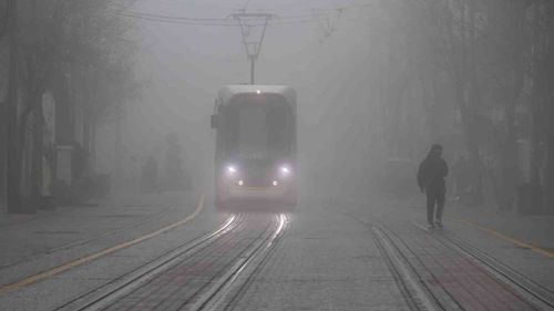 Eskişehir pazar sabahı yoğun sise uyandı; görüş azaldı, tramvaylar ve sokaklar fotoğraflık görüntüler oluştururken ulaşımda aksamalar yaşandı.