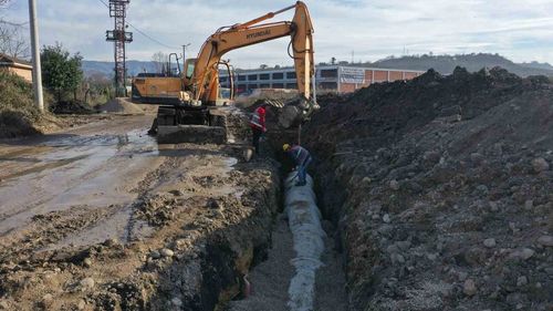Ordu Büyükşehir Belediyesi, Fatsa Konakbaşı Mahallesi'nde 800 m yağmur suyu hattı döşüyor; 70 m uzunluğunda 1.5x1.5 m baks ile deşarj Bolaman Irmağı'na bağlanıyor.