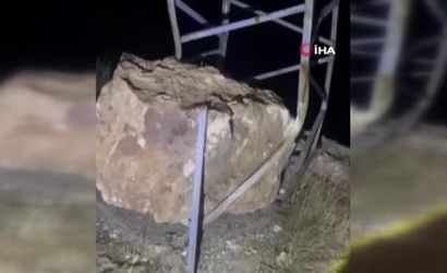Gercüş'te facianın eşiğinden dönüldü: Dev kaya elektrik direğine çarparak durabildi