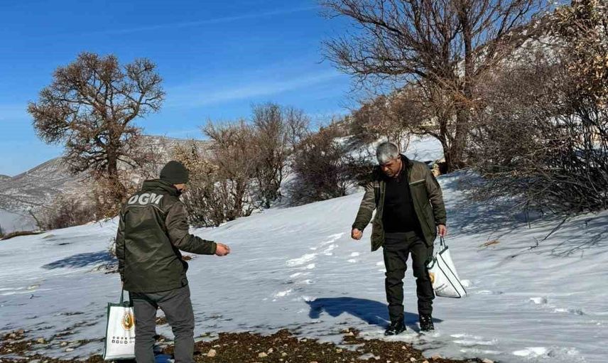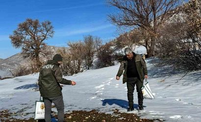 Gercüş Orman İşletme Müdürlüğü ekipleri, zorlu arazi şartlarına ve dondurucu soğuğa rağmen, titizlikle seçilen noktalara her avuç yemi bir canın hayata tutunmasına vesile olma umuduyla bıraktı.