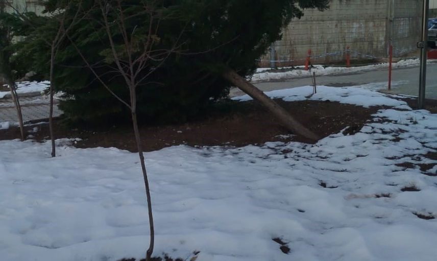 ADIYAMAN’IN GÖLBAŞI İLÇESİNDE ETKİLİ OLAN ŞİDDETLİ RÜZGAR, HASTANE BAHÇESİNDE BULUNAN BÜYÜK ÇAM AĞACINI KÖKÜNDEN SÖKTÜ.