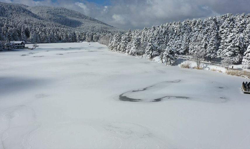 Son beş gündür aralıklarla süren kar yağışı, parkın kar kalınlığını 20 santimetreye kadar yükseltti. Bu kış manzaraları, tatilcilerin ilgisini büyük ölçüde artırdı. Gelen ziyaretçiler, gölün buzla kaplı yüzeyinde yürüyüş yaparak keyifli anlar geçirdi, iskelede fotoğraf çektirdi ve kaymak için kızak ile şambriyelleri kullandı.