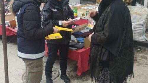 Gölpazarı'nda Küçükyenice ve Hüyük köyleri ile pazar yerinde Jandarma ve Emniyet ekipleri KADES tanıtımı yaptı; kurulum desteği ve broşür dağıtıldı.