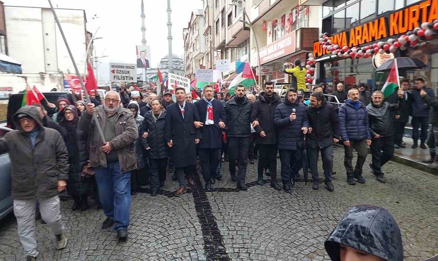 RİZE’NİN GÜNEYSU İLÇESİNDE GALATA KÖPRÜSÜ’NDE GERÇEKLEŞEN "SİNMİYORUZ, SUSMUYORUZ FİLİSTİN'İ UNUTMUYORUZ" SLOGANLI YÜRÜYÜŞE DESTEK YÜRÜYÜŞÜ