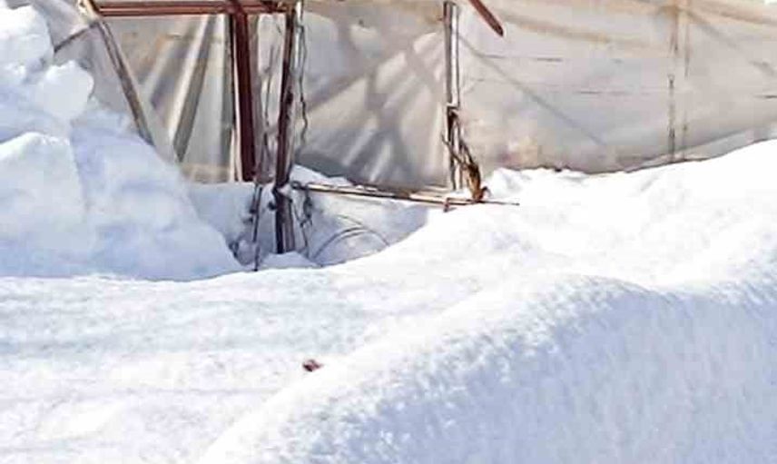 Çimenli köyünde geçimini seracılıkla sağlayan Necati Eser'e ait iki ayrı sera, biriken karın ağırlığına daha fazla dayanamayarak kullanılamaz hale geldi.
