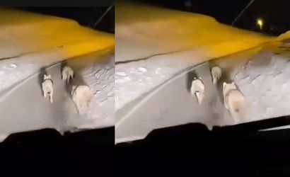 O anları kayda alan sürücüler, kurtların bir süre yol kenarında ilerledikten sonra gözden kaybolduğunu belirtti.