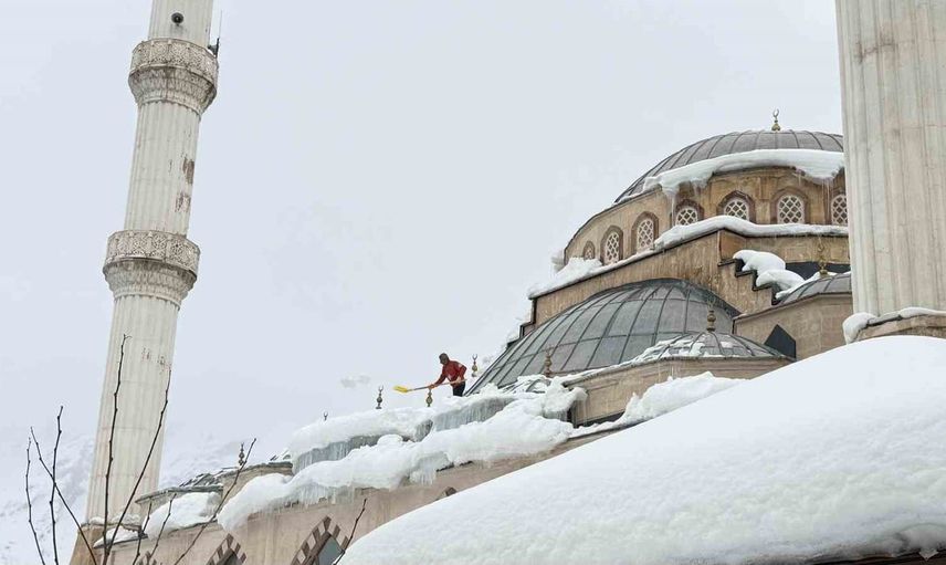Hakkari’de etkili olan kar yağışının ardından Ulu Cami'nin çatısında biriken karlar, cami yönetimi ve belediye ekipleri tarafından güvenli bir şekilde temizlendi.