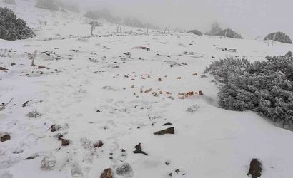 Öte yandan, soğuk hava ve yoğun kar nedeniyle yiyecek bulmakta zorlanan yaban hayvanları için doğaseverler araziye yiyecek bıraktı.