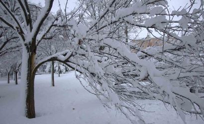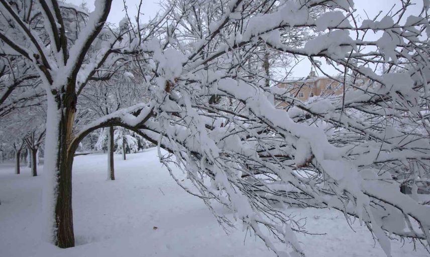Dün akşamdan beri aralıksız devam eden yağışla ağaçların üzerine biriken yoğun kar kütlesi, birçok ağacın dallarının ve gövdelerinin kırılmasına yol açtı.