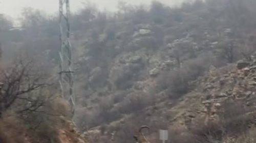 Batman Hasankeyf Kara köyü mevkiinde Abdulhakim Kaçmaz, yola çıkan dağ keçilerini durarak bekleyip geçişlerini sağladı; anlar cep telefonuyla kaydedildi.