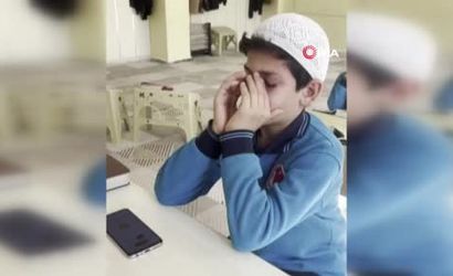 HATAY’DA BİR YILLIK HAFIZLIK EĞİTİMİNİ TAMAMLAYIP HAFIZ OLAN 11 YAŞINDAKİ YUSUF SAMİ ÖZTÜRK, TELEFONLA BABASINI ARAYARAK ‘BABA BEN HAFIZLIĞI BİTİRDİM’ SÖZLERİYLE HABER VERİRKEN GÖZYAŞLARINA HAKİM OLAMADIĞI ANLAR CEP TELEFONU KAMERASINA YANSIDI.