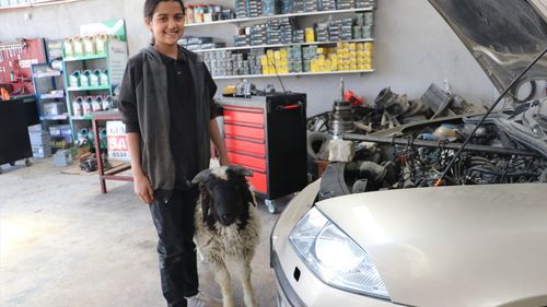 Antakya'da 14 yaşındaki Nehir, hediye aldığı kuzu Şakir'i babasının tamirhanesinde besleyerek ona olan sevgisini gösteriyor.