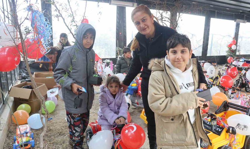 Hatay’da yaşayan 200 öksüz ve yetim depremzede çocuğa hayırseverler tarafından akülü araba, bisiklet, akıllı saat başta olmak üzere çeşitli hediyeler dağıtıldı.