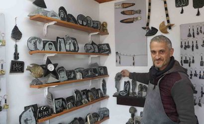 Asrın felaketinde atölyesi yıkılan ve Kültür Sanat Çarşısı’nda yeniden işyeri açan serpantin taşı ustası Güler, burada yeniden taşları işleyerek eser üretimine başladı.