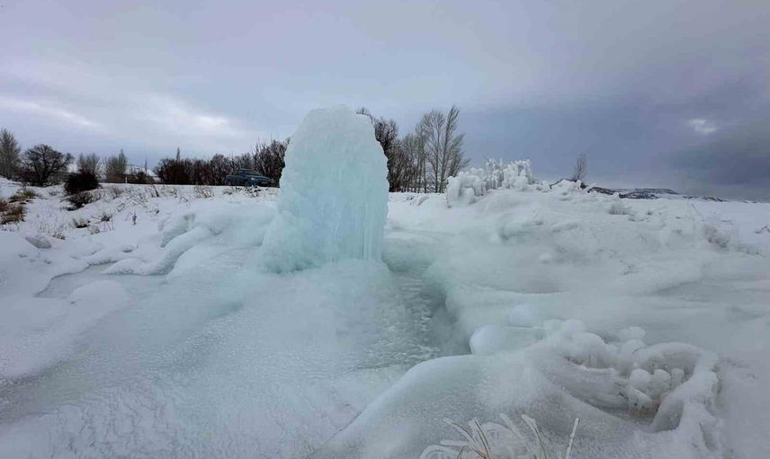 Yetkililerden alınan bilgiye göre, söz konusu buz kütlesi yer altı sularının yüzeye çıkıp aşırı soğuk hava nedeniyle donması sonucunda meydana geldi. Bölgedeki sert kış şartlarının nadir görülen bu tür doğa olaylarını ortaya çıkardığı belirtildi.