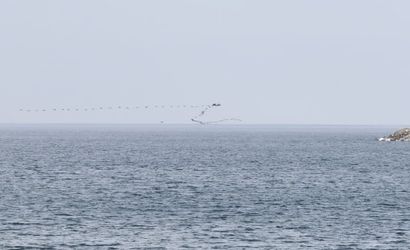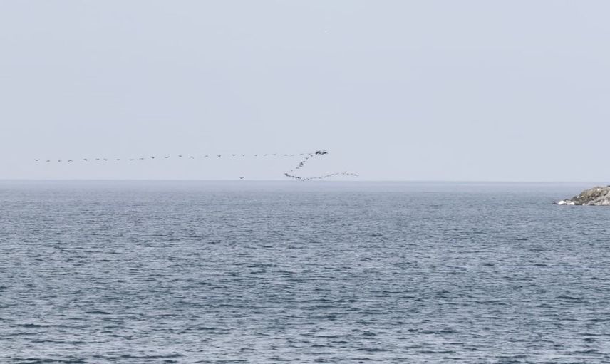 Göç yolculuğu sırasında sürüler halinde ilerleyen kuşlar, Hopa açıklarında deniz yüzeyine yakın ve senkronize uçuş hareketleriyle dikkat çekti. Görüntüler, kuşların toplu ve uyumlu hareketlerini net şekilde kaydetti.