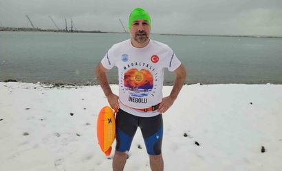 “Bu karlı günü kaçırmak istemedik. İnebolu’da yıllar sonra güzel bir kar yağdı. Şu anda şehir merkezi bile beyaz örtüyle kaplandı. 'Denizden kar yağarsa doldurur' diye tabir vardır. Bizde de denizden yağdı, doldurdu. Bütün İnebolu karlı, bizler de bu karlı havada denize girmesek olmazdı. Ben, açık deniz yüzücüsüyüm. Kış aylarında da yüzüyoruz. Şu anda hava sıcaklığı 1 derece gibi, deniz suyu ise 6-8 derece civarında. Bizler yaz kış denize giriyoruz. Soğuk suyunda şifa olduğuna inanıyoruz. İnebolu, İstiklal madalyalı tek ilçedir. Şehit Şerife Bacı’nın torunları oluyoruz. Şehit Şerife Bacı ve atalarımız, kar kış demeden İnebolu’dan cephaneleri Kurtuluş Savaşı’nda kağnılarla taşıdılar. O büyük mücadeleyi verdiler, Allah hepsinden razı olsun. Bizler de dayanıklılığımızı göstereceğiz. Bu suya gireceğiz.” Gürel, soğuk suyun şifa ve sağlık olduğunu vurgulayarak, “Buradan bütün yüzücü arkadaşlarıma selam gönderiyorum. Arkadaşlar İstanbul Boğazı’nda güzel yüzün ama İnebolu’da güzel. Herkesi İnebolu’ya bekleriz” dedi. İnebolu'daki bu görüntüler, ilçenin karla kaplandığı bir günde vatandaşların dikkatini çekti. KASTAMONU’NUN İNEBOLU İLÇESİNDE SOĞUK VE KARLI HAVAYA ALDIRIŞIN ETMEYEN BİR KİŞİ, KARADENİZ’İN SERİN SULARINA KENDİSİNİ BIRAKARAK YÜZDÜ.