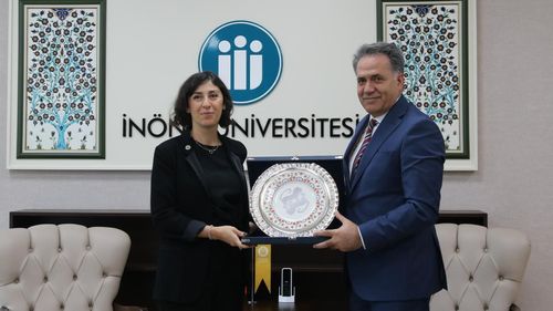 Gazeteci Zeynep Bilgehan, İnönü Üniversitesi'ndeki panel öncesi Rektör Prof. Dr. Nusret Akpolat’ı makamında ziyaret etti.