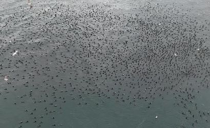Dondurucu soğuk binlerce kuşu denizde bir araya getirdi