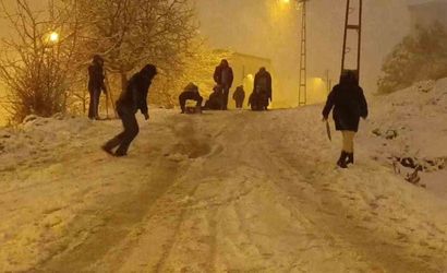 Yarıyıl tatilinde olan çocuklar, yanlarına getirdikleri kızaklar, poşetler ve kendi imkanlarıyla yaptıkları araçlarla mahallenin dik yokuşlarında kayarak günü değerlendirdi. Kızaklar ve poşetlerle kayan çocuklar, kaymanın yanı sıra neşeli bir kartopu savaşı da gerçekleştirdi.