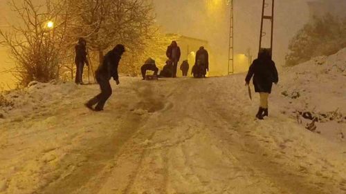 İstanbul Pendik’in Ertuğrul Gazi Mahallesi’ni beyaza bürüyen kar, çocukların kızak, poşet ve kartopu ile sokakları oyun alanına çevirmesine neden oldu.