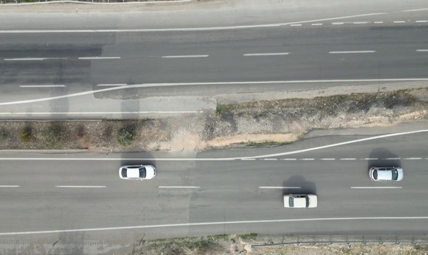 Yoldaki kayma nedeniyle güzergâhtan geçen araçlar şerit değişikliği yapmak zorunda kalıyor. Bir araç sol şeritten seyrederken, fay hattının geçtiği noktada aniden orta şeride geçip yoluna devam etmek zorunda kaldı; bu durum güvenlik risklerini ortaya koyuyor.