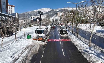 Ekipler, kar yağışının başladığı ilk andan itibaren özellikle ana arterlerde kar küreme ve tuzlama çalışmalarını durdurmadan yürütüyor. Yol Yapım, Bakım ve Onarım Dairesi Başkanlığı koordinasyonunda cadde, bulvar ve sokaklardaki biriken karlar temizlenerek yolların güvenli şekilde ulaşıma açık kalması sağlanıyor.