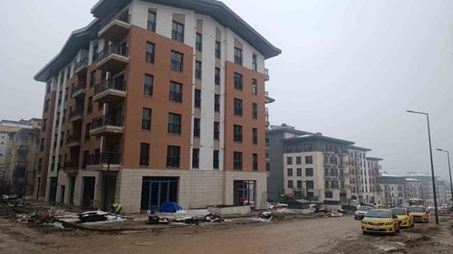 Kahramanmaraş Bahçelievler Mahallesi'nde yerinde dönüşüm kapsamında inşa edilen deprem konutlarının yapımı tamamlandı, altyapı ve çevre düzenlemesi sürüyor.