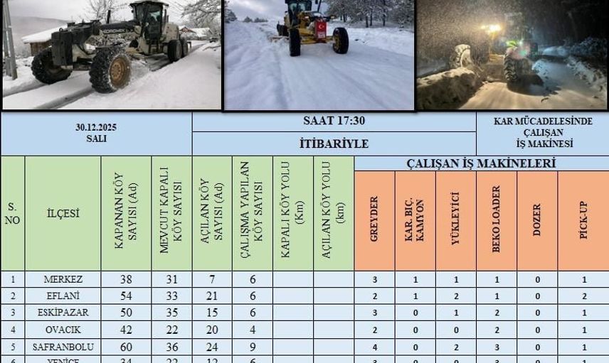 KARABÜK’TE YOĞUN KAR YAĞIŞI NEDENİYLE KAPANAN 99 KÖY YOLU, YÜRÜTÜLEN ÇALIŞMALARIN ARDINDAN YENİDEN ULAŞIMA AÇILDI.
