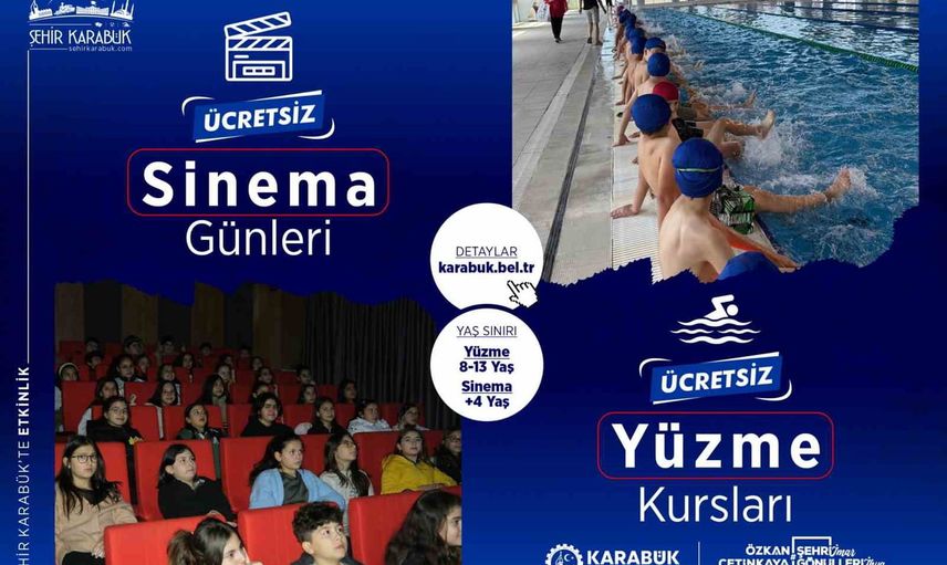 KARABÜK BELEDİYESİ TARAFINDAN ÇOCUKLARIN SPORTİF VE KÜLTÜREL GELİŞİMLERİNE KATKI SAĞLAMAK AMACIYLA DÜZENLENEN ÜCRETSİZ YÜZME KURSLARI İLE SİNEMA ETKİNLİKLERİ DEVAM EDİYOR.
