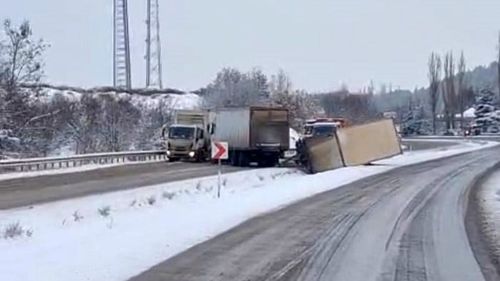 Karabük’te kar yağışı yolları felç ettiKarabük’te etkili olan kar yağışı sırasında ağaçlar devrilip yollar kapanırken, kaygan zeminde kayan araçlar bir dizi kazaya neden oldu.Ahmetusta Geçidi'nde devrilen çam yol kapattıKarabük-Bartın kara yolunun 1030 rakımlı Ahmetusta Geçidinde karla kaplanan bir çam ağacı…