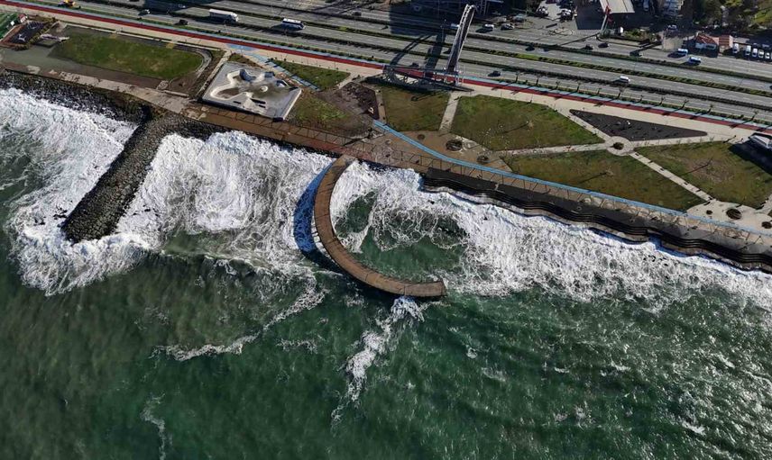 Dalgalar sahillere vururken, beraberinde taşı toprağı da getirerek yaşam alanlarına sürükledi. Kıyı şeridinde oluşan tahribat ve yüksek dalga anları, havadan görüntülendi.