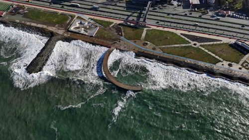 Karadeniz’de etkili fırtına nedeniyle Rize Sahili'nde oluşan dev dalgalar, sahile vurma ve yaşam alanlarına taşınan malzeme anlarıyla havadan görüntülendi.