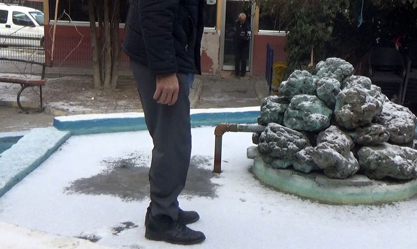 Bazı vatandaşlar donan havuzun üzerine çıkarak yürürken, bazıları ise çekiçle buzu kırmaya çalıştı. Ortaya çıkan görüntüler bölge halkının dikkatini çekti.